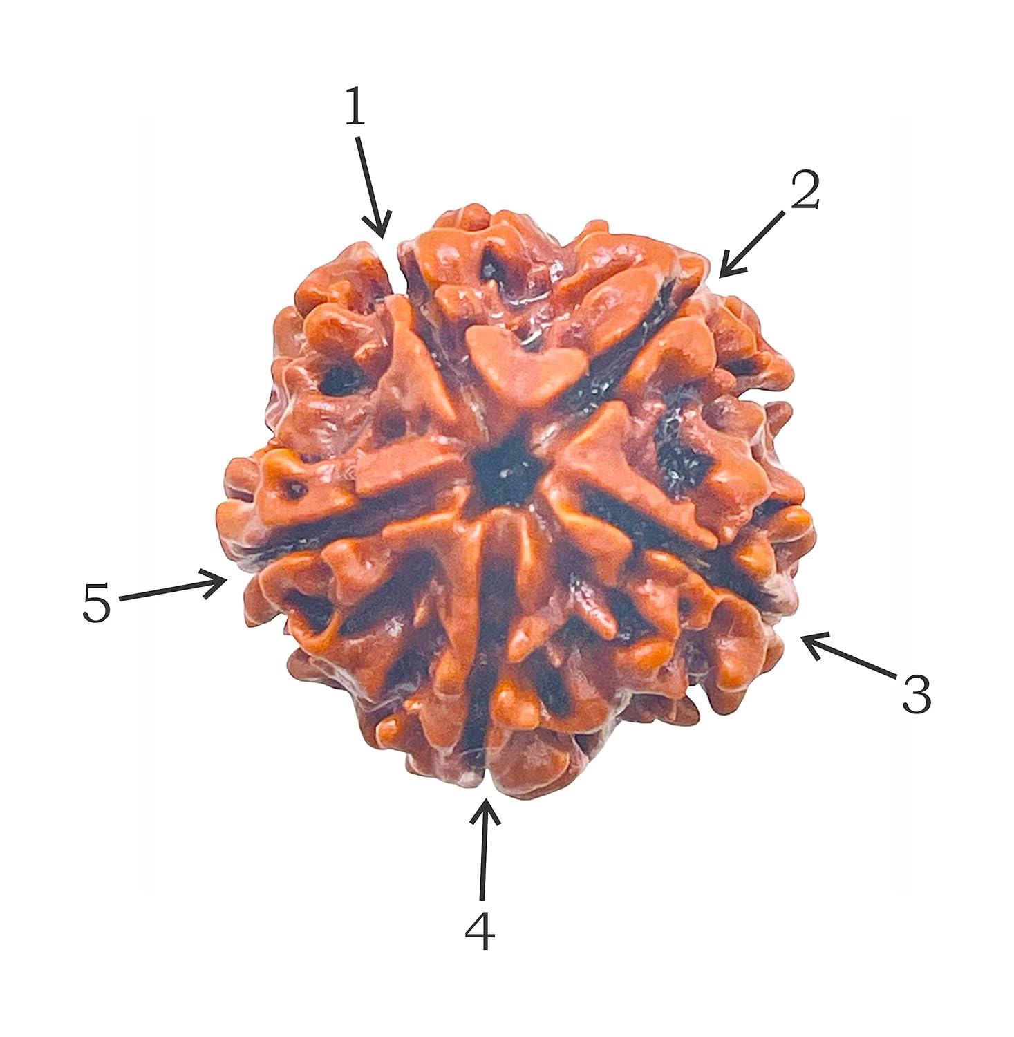 5 Faced Rudraksha – Nepal exalts Jupiter, develops cosmic wisdom, balances Throat Chakra, promotes mental clarity, gains Siddhis, removes delays in marriage, ensures bright future, and ensures growth.